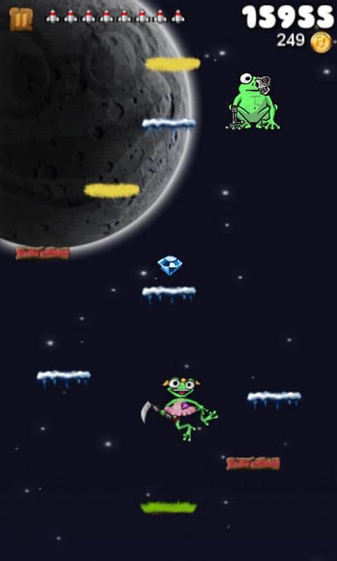 Froggy Jump is an arcade game about adventures of a funny frog. In order to go to the next level, you need to jump on the platforms as high as possible. Along the way you will come across useful bonuses that you can use to achieve the goal, such as a missile. In addition, do not interfere, and the collection of crystals and other Goodies, which gives certain advantages. If you tire of the character - this is not a problem - buy a new outfit and even better for your greenbacks! Complete all the colorful locations - from caves with lava to the space of the sky, and who knows, maybe the open planet will be named in your honor!