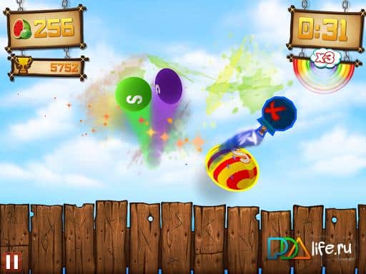Fruit Ninja vs Skittles - Worlds of candies and Fruit Ninja clashed in the beautiful game on android! Now in this game not only fruit, but candy! Thanks to the candy Skittles, the game has become more colorful and brighter. As before you need to cut flying fruit and candy, but in the game and added a colorful rainbow. As before the game has bombs. With the addition of candy the game became more fun and became much more exciting.