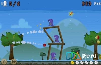 Fruit Rocks game on windows phone, about the invasion of aliens. Kill the aliens by fruit trees,throws stones at them, generally bullied as you want), the mechanics of the game reminds Angry birds.