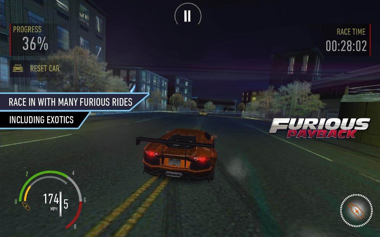 Furious Payback Racing – exciting racing on Android where you will help Brian win over the cartel criminals and corrupt police. Our hero is able to skillfully manage your car and this skill be useful in a extreme race, in which Brian will participate, to protect his family from enemies. Step on the gas pedal and rush forward at tremendous speeds, while trying to break away from his pursuers and destroy the cordons of police. Come to the finish first and earn enough points to finally win the race.