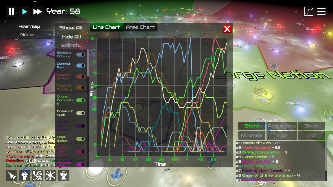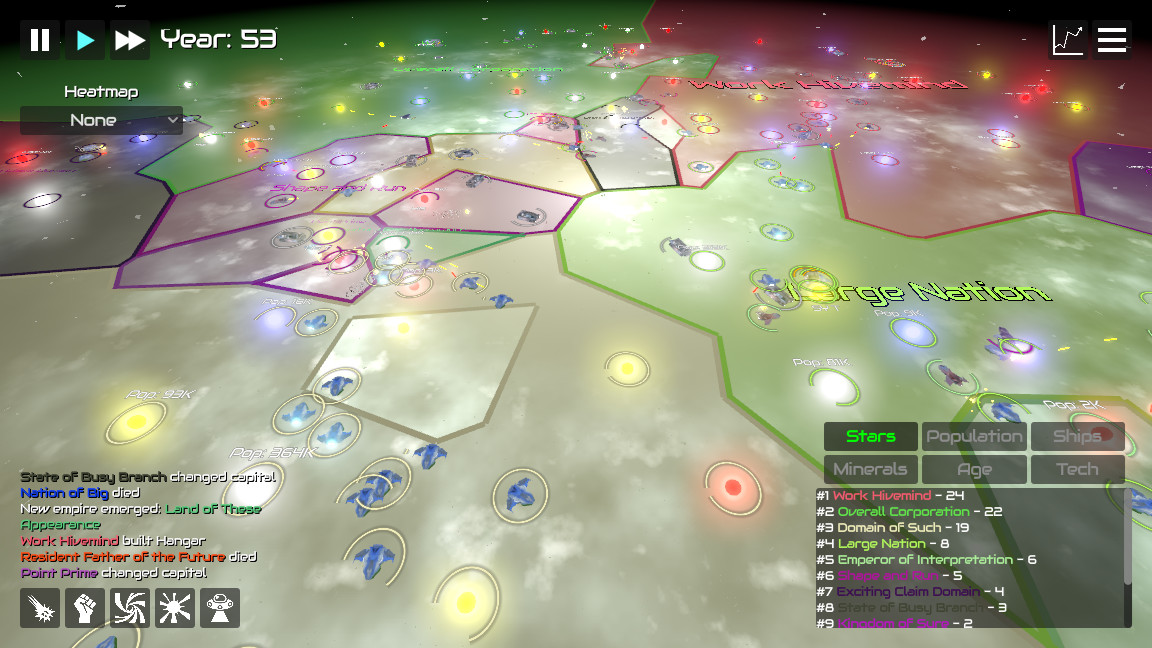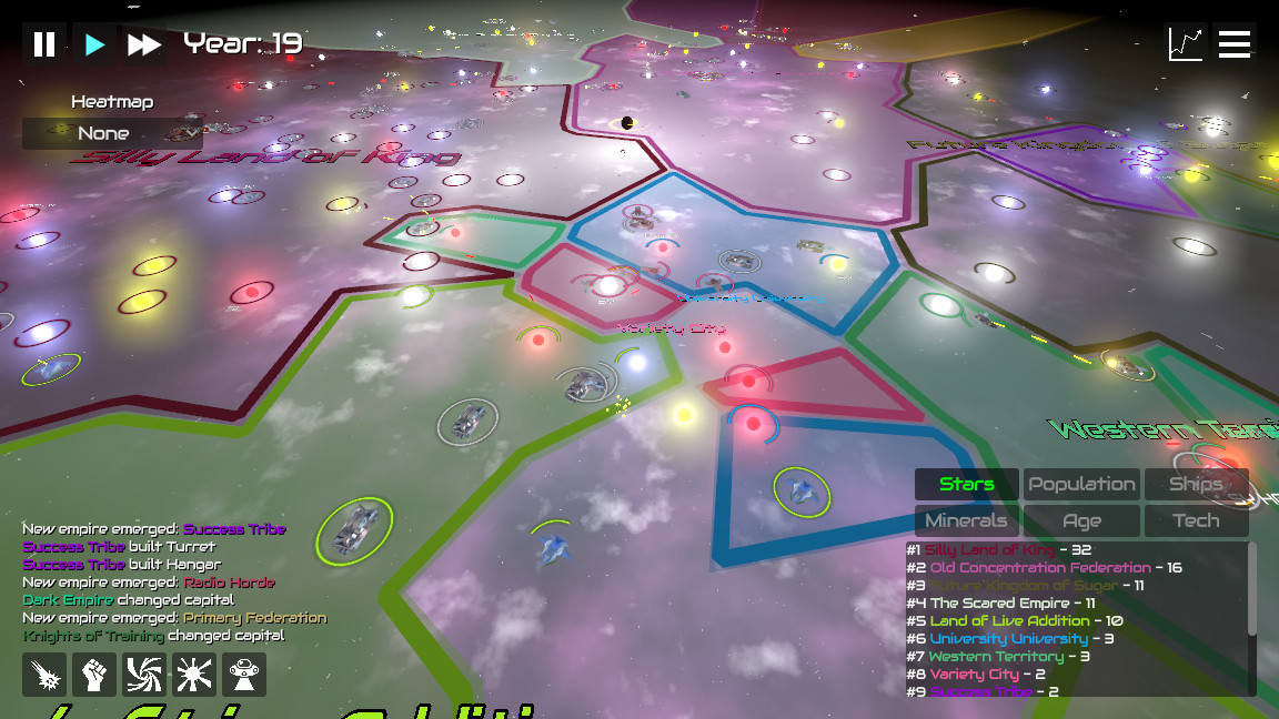 Galactiwar: Empire Simulator is an expansive strategic space sandbox where your empire starts with a single base and grows to dominate the entire galaxy. Explore star systems, gather resources, develop technologies, and build battle fleets for defense and expansion. In Galactiwar, every choice you make shapes the fate of your civilization, from diplomacy with alien races to fierce interstellar battles. Manage your economy, colonize worlds, and prove that your empire deserves the title of "legendary." The simplicity of management combines with deep strategy, and the limitless cosmos awaits your greatness.