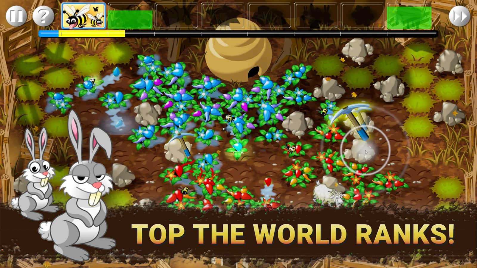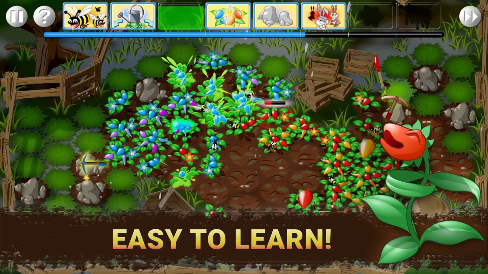 Garden Wars - the original tactical strategy with elements of Tower Defense in which you play the role of gardener, but the problem is that in one area there are two fan plants that caused the conflict and now you need all the forces to occupy the largest possible area. All the playing field is divided into cells digging up kitchen which you plant berries, which in turn will live bees, which will pollinate plants, which will allow you to quickly defeat the opponent. It should be remembered that the opponent does not sleep and tries to get all the field entirely. In addition you will get various special abilities that will allow you to fully realize all tactical developments. The game combines elements of tactics and at the same time simple to learn.