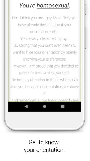 Gay test - Take an interesting test for your orientation with the help of 26 clear questions that give an amazing result as accurately as possible. The questions were compiled in such a way that 96% of people received honest answers during testing. The test is completely free and anonymous, so you can not worry about your privacy and answer the questions as you want. Get to know yourself better, and regardless of what you receive, be ready to accept this information and live with it further, as it was before.