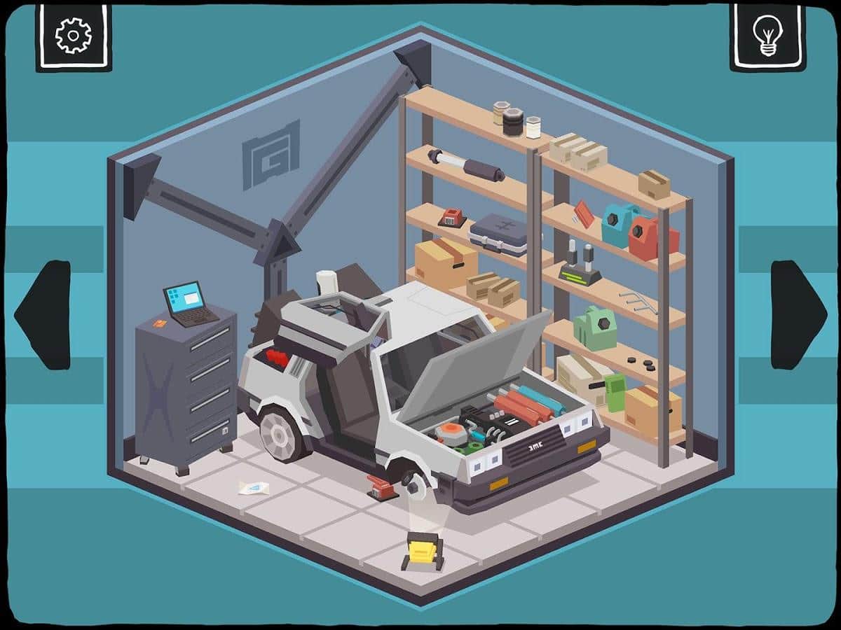 Get aCC_e55 – addictive puzzle game for Android where you will repair the time machine. You bought at the auction the time machine which is a replica of the famous machine from the movie Back to the Future. But to start it you can not as it is necessary to repair the engine. In the game you will find yourself in the near future – cyberpunk where you local geek. You are not a scientist and not a genius so talented inventor who afford to fix the jet engine. Navigate to the workshop next to the bar and try to collect the car. Solve puzzles, quests, trying to piece together the engine and fix the other smallest car troubles. Rotate the room in different directions and solve different kinds of problems.