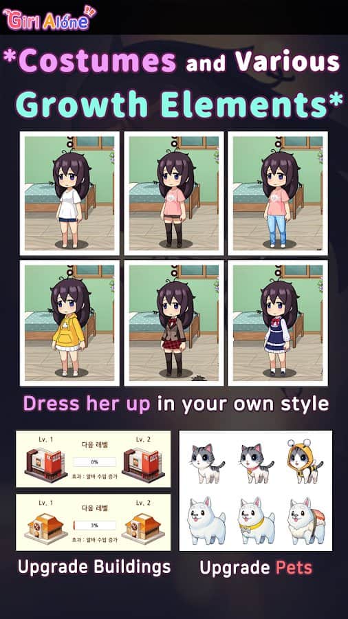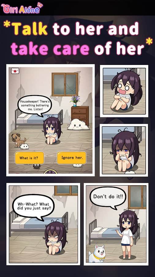 the Little girl remained alone and closed in itself from the environment. Help her properly grow up, to discover the whole world around, don't be afraid to be brave and to Express their point of views. You are the only one who she befriends and trusts, so talk to her, clean and decorate the house, go together for walks in different places, play mini-games, and tame lovely Pets and care for them, choose outfits and more. But alas, it will not always and in the end all secrets of girls will open.