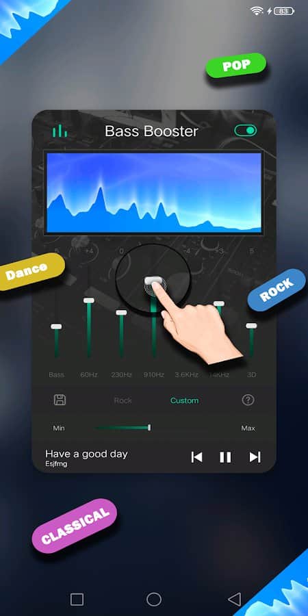 Global Equalizer & Bass Booster Pro will allow you to improve sound quality on your device, to increase the volume level and to control the overall audio settings. During music playback you can change the spectra (there are 5) at its discretion. The app works with any audio player and video player. Powerful built-in equalizer with 10 presets, has the ability to convert a low frequency. Stylish and intuitive interface is another neoprime advantage of the program. It is possible to add bass and various effects (Visualizer, Volume Booster, etc.)
