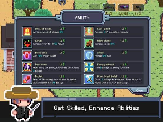 Glory of the Survivor – action game for ios, where you fight aliens. In this game you will control a brave girl named Abby who was in the wrong place at the wrong time. Our heroine randomly appeared next to the portal leading to another dimension, where aliens live. Your main task will be to enter the portal and destroy all the monsters and return home. The game is made in pixel art and will delight you with various types of weapons and improve the characteristics of the character.