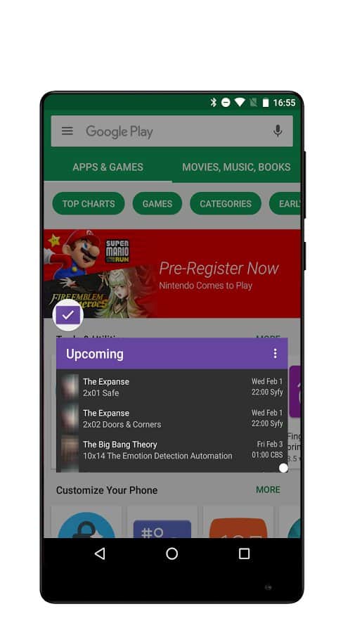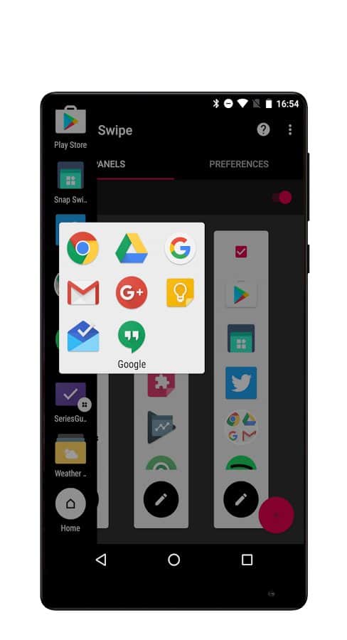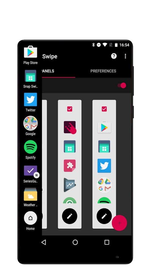 Glovebox for Android. Run the launcher gesture from the left edge of the screen, continue without lifting the finger to select and run applications, actions or labels. By purchasing the premium version of the program, you receive unlimited number of shortcuts, the ability to add widgets and so on.