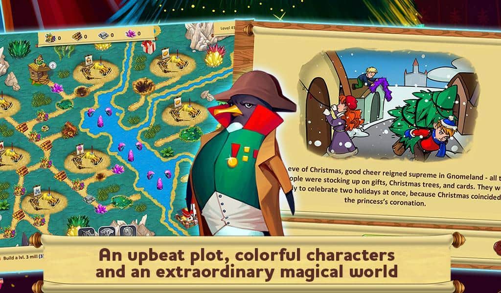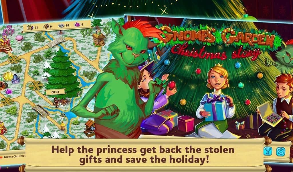 Garden Gnomes: Christmas story - Christmas strategy the story is set in a sort of fairy Kingdom. All the inhabitants of the world are preparing for the holidays, however, the evil Troll living in the neighborhood are not pleased with the turn and one day after collecting his friends stole a Christmas tree. Now you, along with the Princess will go on a journey through the Kingdom and to try to find the green beauty. Gameplay is divided into many tasks as very simple resource extraction and construction, to solve intricate puzzles.