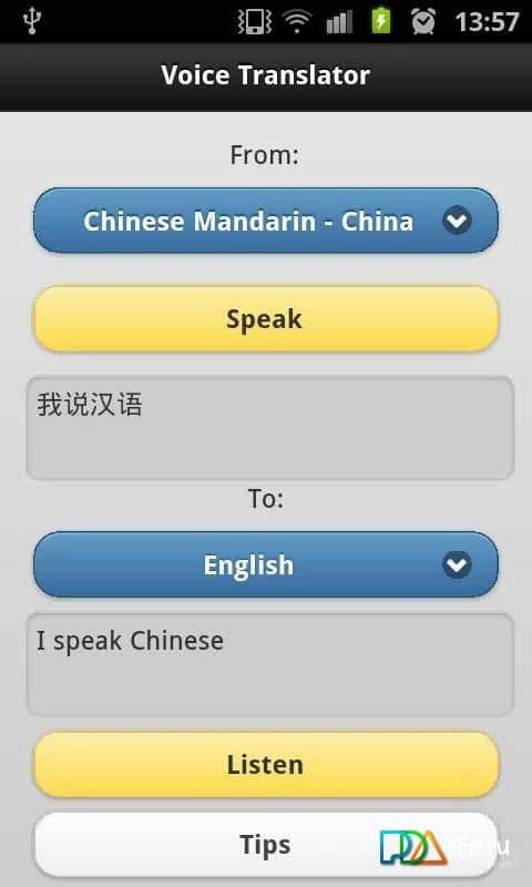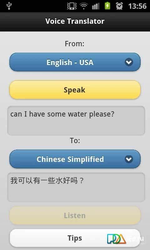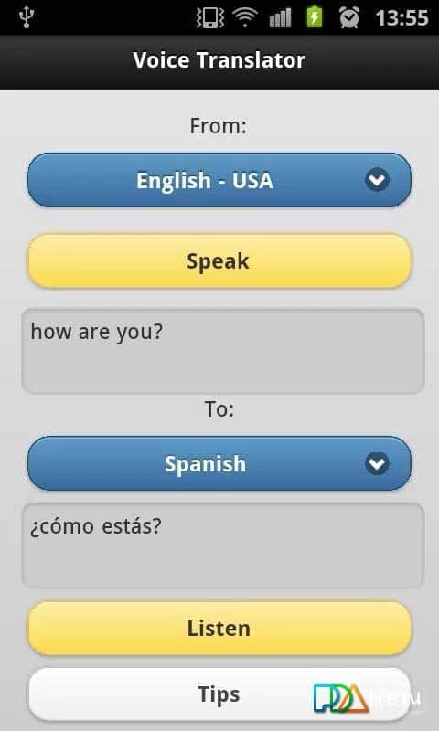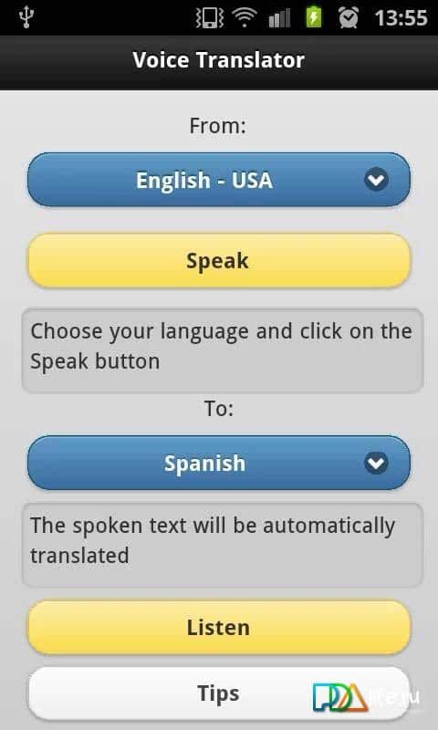 Voice translator is a good program for users of Android devices, with which you will be able to transfer not only voice and text, but speech-to-speech. The app provides translations in 6 languages and requires a stable Internet connection. The translation can be heard. Enjoy!