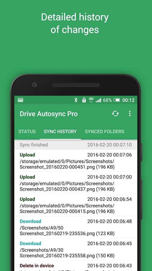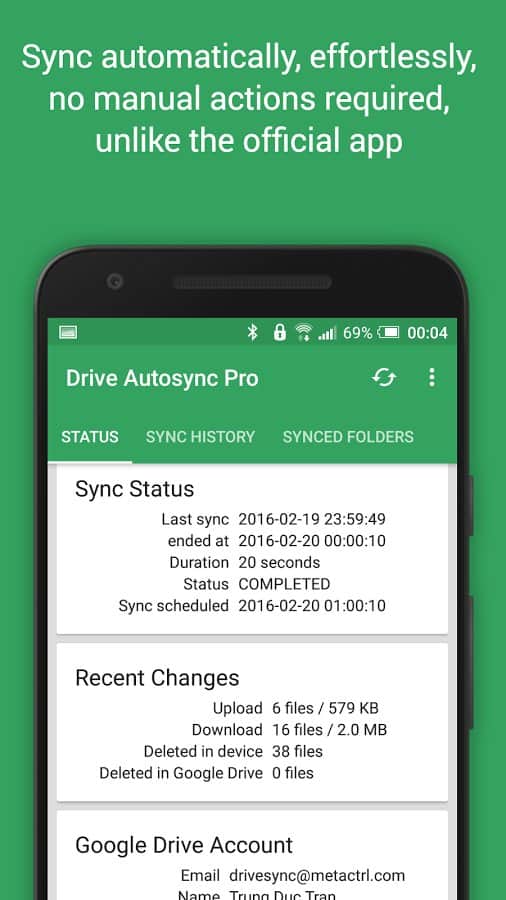 Instant upload: new files (for example photos) are uploaded to Google Drive immediately
