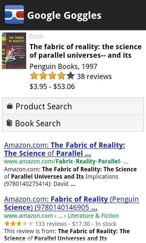 Google Goggles - the Entertaining app from all of us well-known developer. It was created in order to recognize almost all! Don't know what to you for painting? Aim the camera at it, and Google will find the answer for you! Arrived in another country and the signs are written not understand that? Point the camera, and select the desired language for you, fortunately goggles supports almost all languages, and easily translate for you. Want to communicate with people in another language? Turn on this app, it will listen to what people say and translate you into an understandable language for you.
