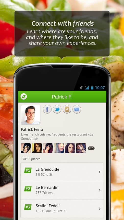 "live" with friends: information on which cafes, bars and restaurants visited by your friends where they like and do not like the opportunity to share with them his impressions.