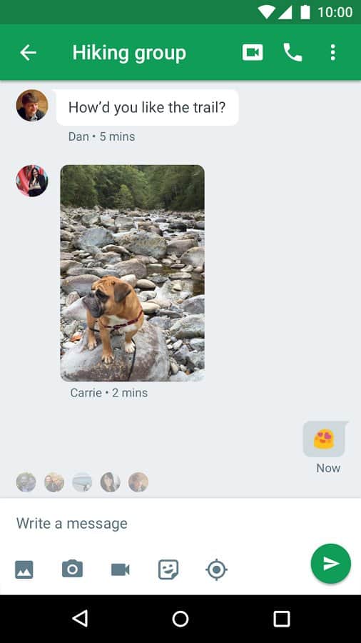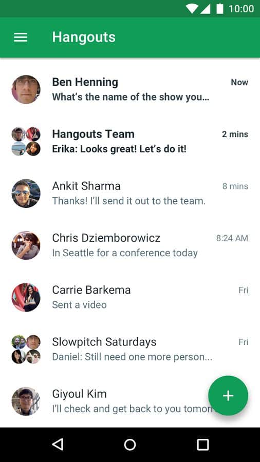 Hangouts, Send, and receive messages from their friends. This application will help you keep in touch with them. You will be able to communicate in voice chat, or send sms, mms messages, and also to arrange video meeting. If you want to chat instantly with many friends, then it can create a group conversation, which can connect up to 150 users, which is very little.