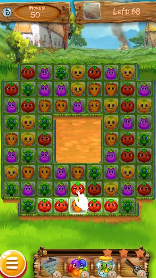 2 Harvest Hero: Farm Swap is the game in the genre of three in a row on Android, where you will be traveling to different gardens, vegetable gardens, and other locations. Gather three or more objects in a row and remove them from the field, freeing up space for others. Collect a great harvest of fruit, vegetables and berries. Use various bonuses and power-UPS as quickly as possible to complete the level and score maximum points. Create as long rows of fruits and vegetables and set your highscore in this game. Progress through numerous levels of this game and compete with friends for best results.