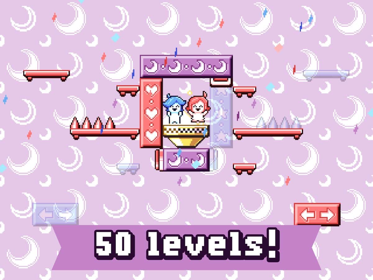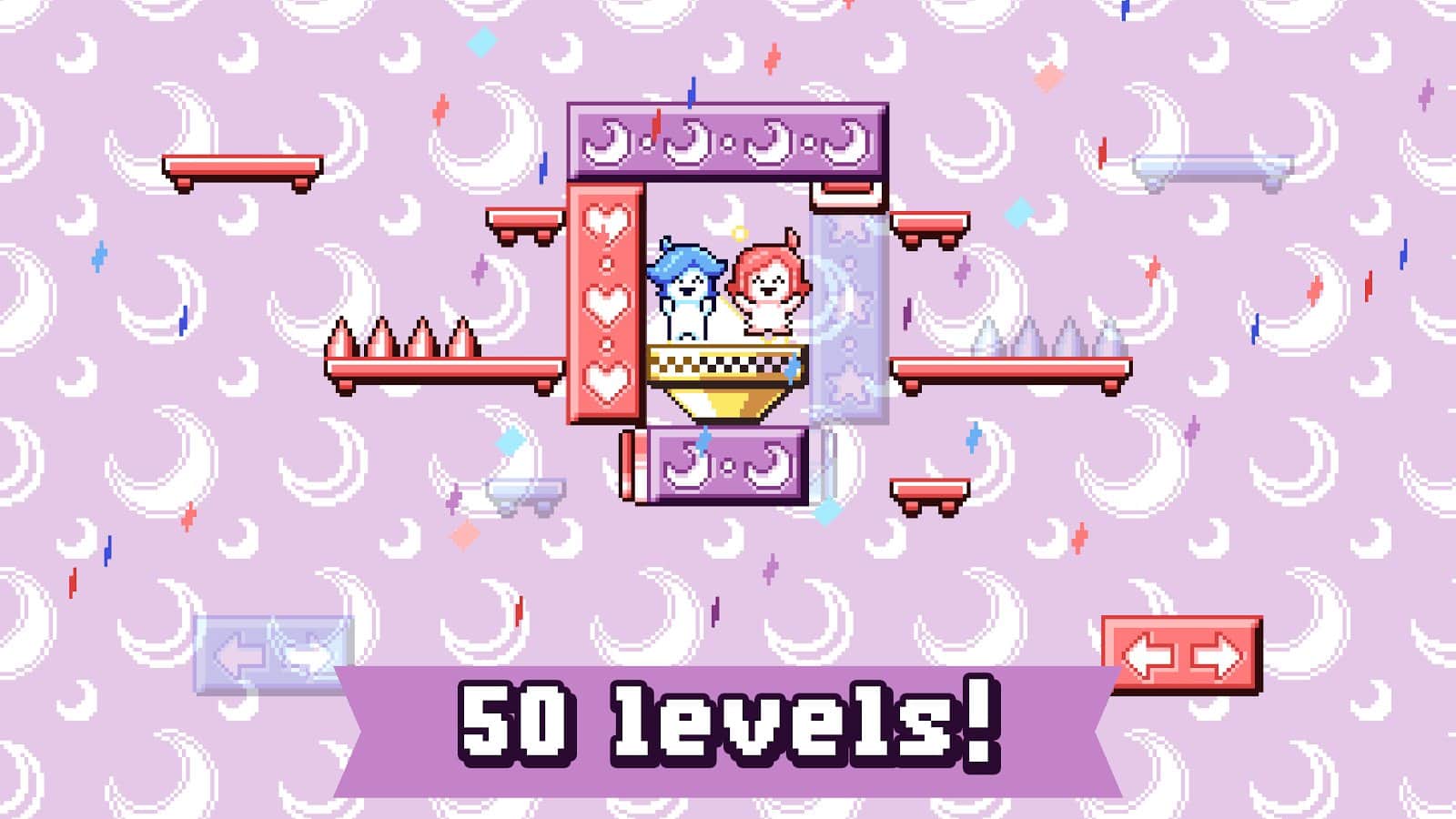 Heart Star is a puzzle game for Android where you will help the two heroes to travel to different worlds. In this game you will take control of two heroes who move through parallel worlds and bypass the numerous traps on the way. Each character has a different color and moves according to its own world and platforms of the same color. Help the hero to interact with the platforms of your color and with each other to solve difficult riddles and puzzles and reach the goal. Game players will appreciate the graphics in retro style, 50 levels-simple and intuitive control.