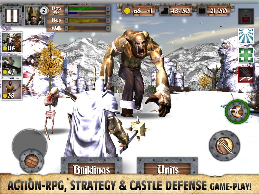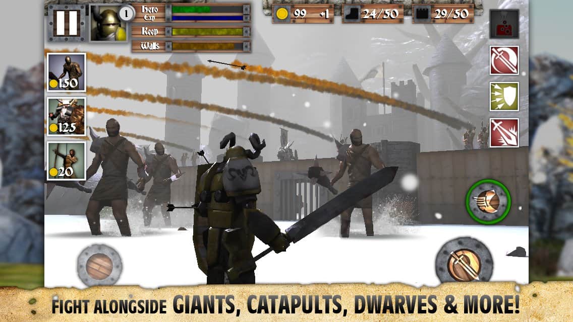 Heroes and Castles - a Fascinating Android game that combines third-person shooter game in the style of tower defense, and RPG elements. You will play a brave knight who has to defend the gate of the castle from hordes of orcs and undead trying to break through the defense and get into the castle. Here and come in you! Stand near the main wall of the castle, and don't let all these beasts pass. Experience you can improve your fighter.