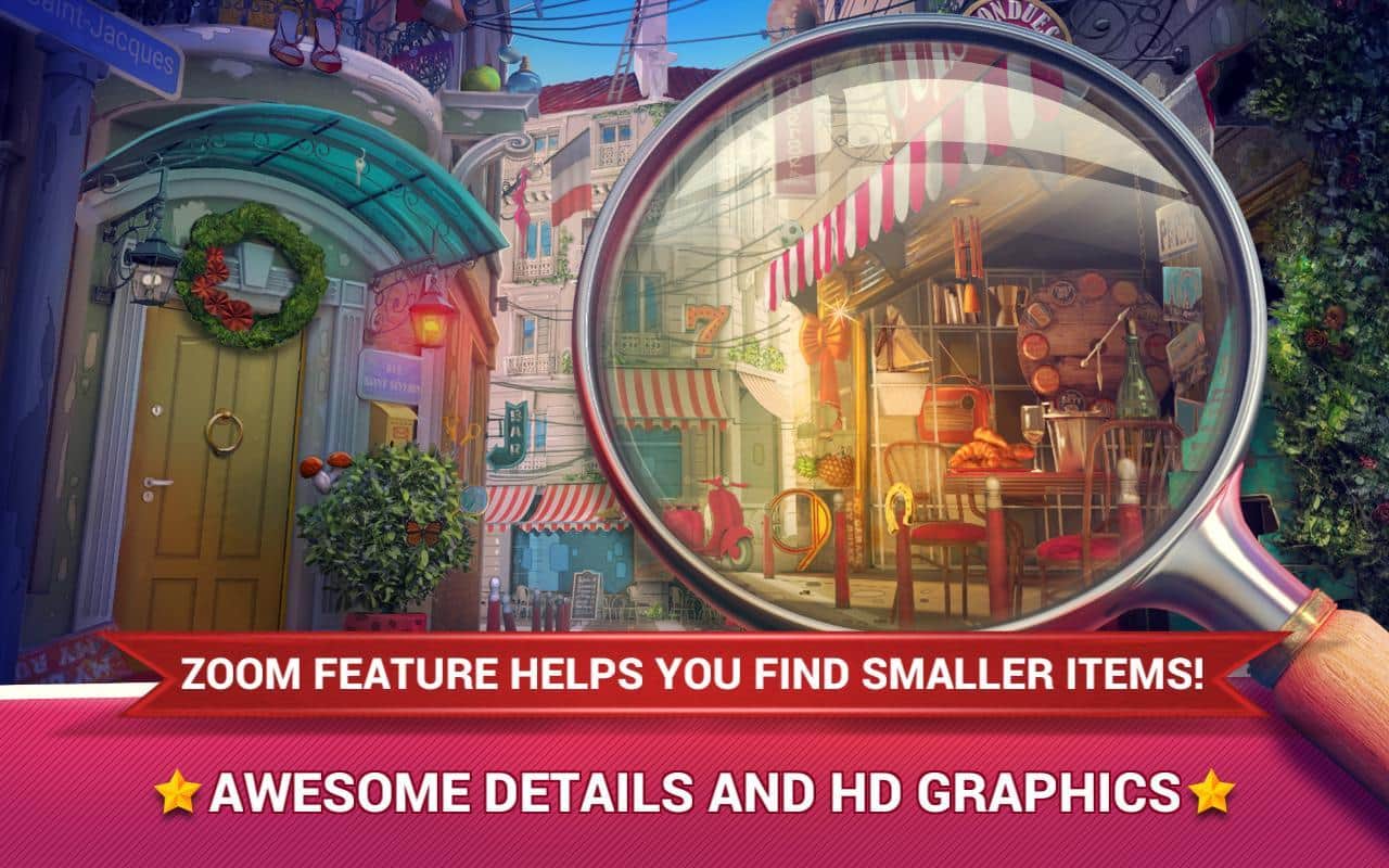 Hidden Objects - Love in Paris – a great game on Android, on search of hidden objects. In this game you will plunge into the world of beautiful and fabulous locations where you will look for the items you want. Navigate to numerous locations and collect more than 2,000 different items. Play this game and check on the fact of your powers of observation and a keen mind, and others needed for this game of ability. Zoom in or otdavayte the picture using the zoom button that will help you to quickly find the desired object and pass the level. With each new level complexity of game will increase and you will have to resort to using hints. Play this game and enjoy pleasant music, lots of items and great graphics.
