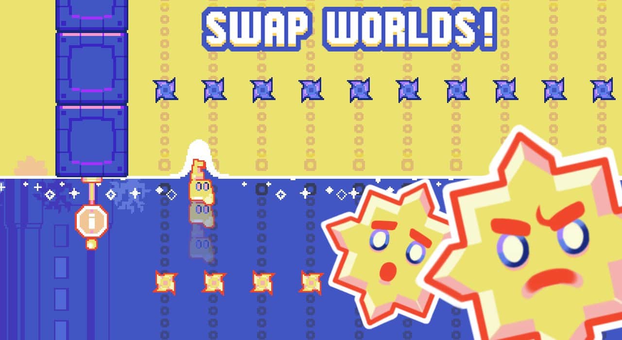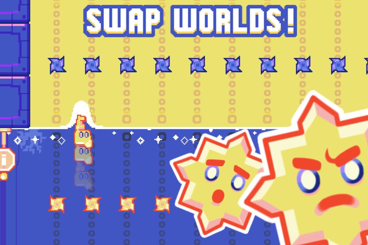 Studio developer Nitrome is well known for its arcade projects that captivated gamers are not only original graphics solution, but also unique gaming solutions. Examples of such non-standard approaches can be considered games like Icebreaker: A Viking Voyage, Magic Touch: Wizard for Hire, Stretch of Dungeon, and of course Leap Day, although this is not a complete list of hits from the Cannon. In a new project called Hop Swap developers used a pretty bold mechanics, when the game screen is divided into two parts, each of which is it's own world, you have to switch between worlds to complete, while solving puzzles and problems. It is worth remembering that Hop Swap it is still a platformer, so you need not only savvy, but also agility.
