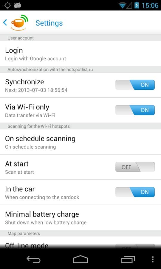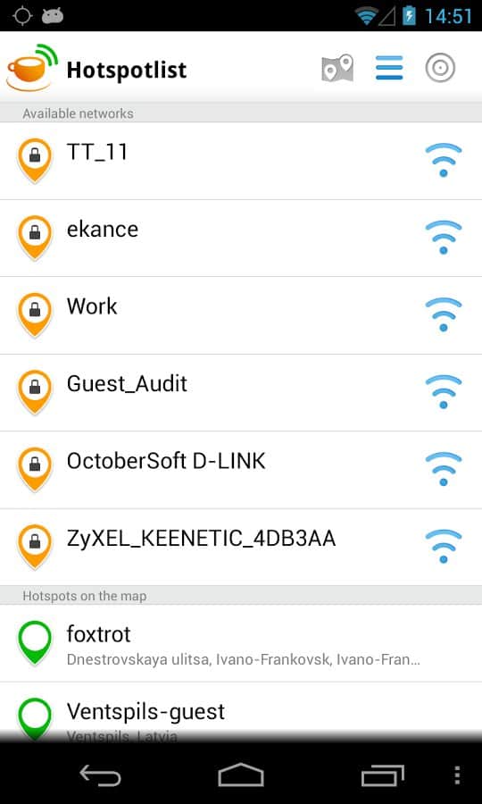 Hotspotlist - Free WiFi – a great app for Android to provide you excellent service in finding Wi-Fi networks around the world. Besides, you have the opportunity to participate in the project, a pre-scan of the city and sending the data to a server for further processing. Well, the results you see directly in the app and on the website.