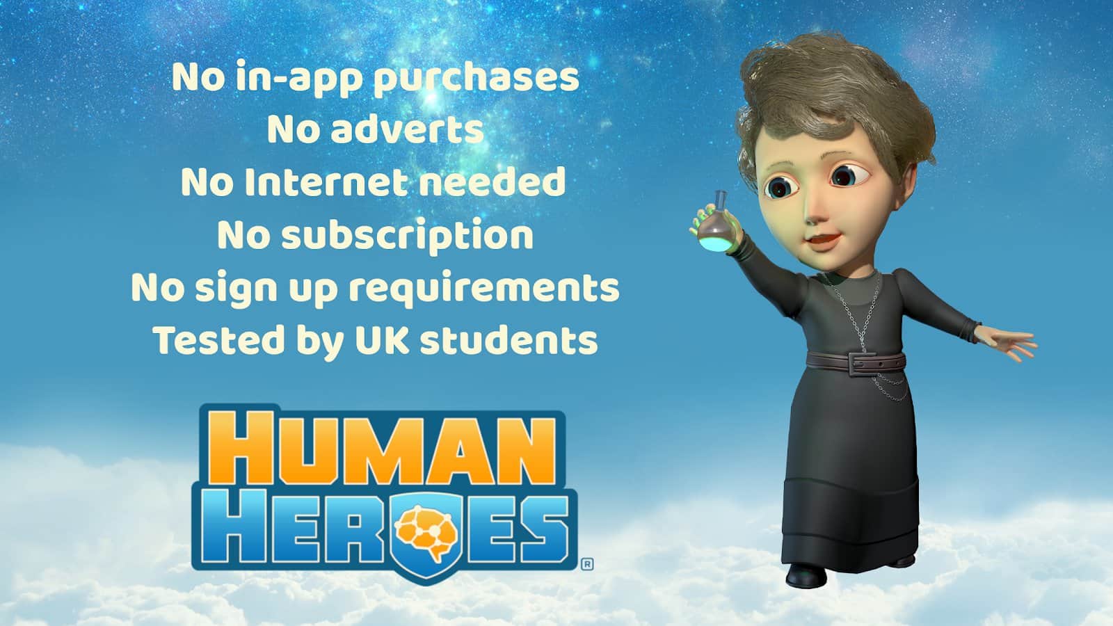 Human Heroes Curie on Matter - educational arcade game for children on Android, which will present the most popular scientific terms, will reveal the secrets of the most incredible achievements in this field and will help you learn many new and useful information. In the Human Heroes Curie on Matter you go into an unforgettable adventure together with Marie Curie, which will decide with you the amazing puzzles and puzzles. You will find many mini-games, puzzles, stories and interesting facts from the life of great scientists. Improve your knowledge in chemistry and physics and learn all the scientific facts in a completely new form.
