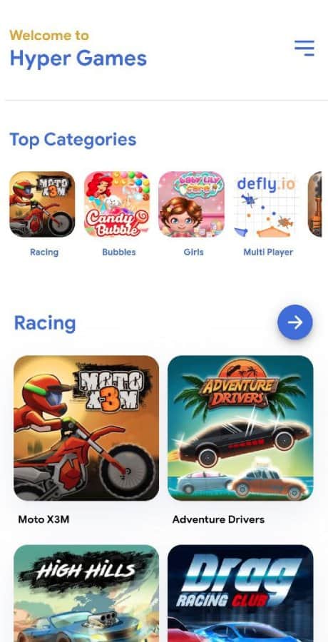 Hyper Casual Games - If you are an obvious fan of many games, and the memory on your phone is constantly running out or there is none at all, then this application will make your life easier and help you enjoy the passage of many games! Choose a category (racing, bubbles, for girls, simulators, multiplayer, etc.), then browse the games available in them and start having fun. You will immediately notice how easy control is built into the application itself, and also how much memory you have freed up in your phone from the number of different downloaded games.