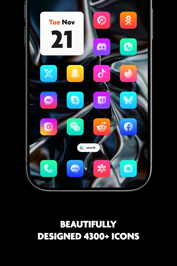 i18 Icon Pack - Refresh your device's screen with a stylish icon pack inspired by iOS 18. Enjoy an elegant design featuring rounded corners, gradients, and exquisite colors that give the interface a modern and sophisticated look. The collection includes over 5,100 icons, as well as beautiful cloud wallpapers that are regularly updated. Support for both light and dark modes ensures a harmonious design in any environment. The pack is compatible with popular launchers and receives regular updates, with widgets planned for the future.