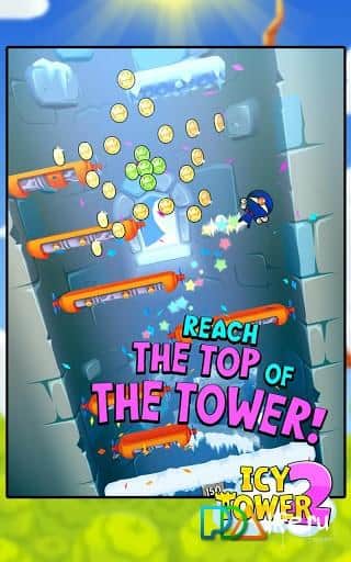 Icy Tower 2 - continuation of the famous jumper for Android. Jump on the platforms, collect coins and most importantly do not fall down, to fly down to far, and fall sick. In the game there are different bonuses in the form of relief items for the player float on the umbrella, run on walls, generally catch the wave.