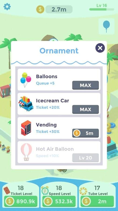 Idle Aqua Park is a unique game on Android where you will manage your own water Park. In this game your main goal will be to create the best Waterpark in the world and gather crowds of visitors. Build incredible and terrifying rides, create multiple pools and recreation areas. Create a unique theme and all people want to get in your water Park. Watch how to check out your visitors and get money. Find new ways to make money and start to act now. Earn bonuses and compete with other players for the best scores in the game.