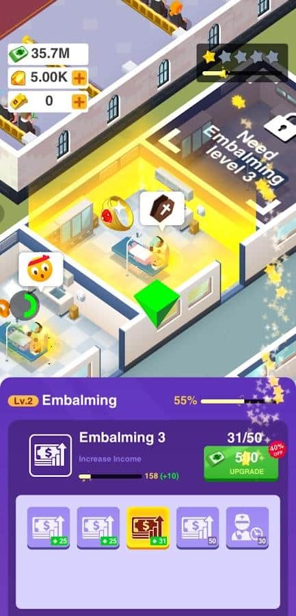 Idle Mortician - Seriously engage in a new business that is important for every person and their relatives. Find out what needs to be done to expand the cemetery and constantly improve it. Expand your own team, allow people to organize funerals properly, build useful buildings, help conduct ritual services daily, and negotiate with new priests, doctors, and other workers to provide services. Gradually, you will become the best cemetery in the city and be able to help the living bury the dead.