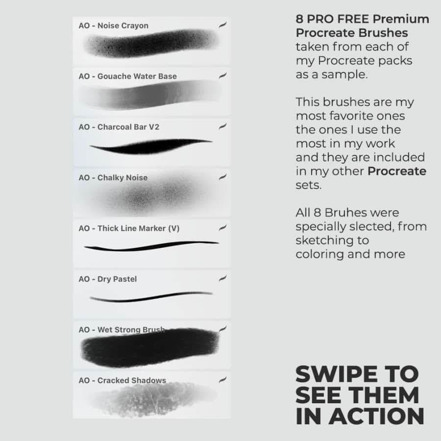 Illustration Procreate Brushes - For any artist, it is important how detailed he works. Download this special brush set and use it by adjusting the available settings for each detail. These brushes have special textures, because they are very smooth, have a natural appearance. Find an individual purpose for them in your own drawings. The brushes themselves are half transparent, so they are ideal for shading, drawing shadows, special effects and other things. Add noise on top of your drawings and adjust the effects.