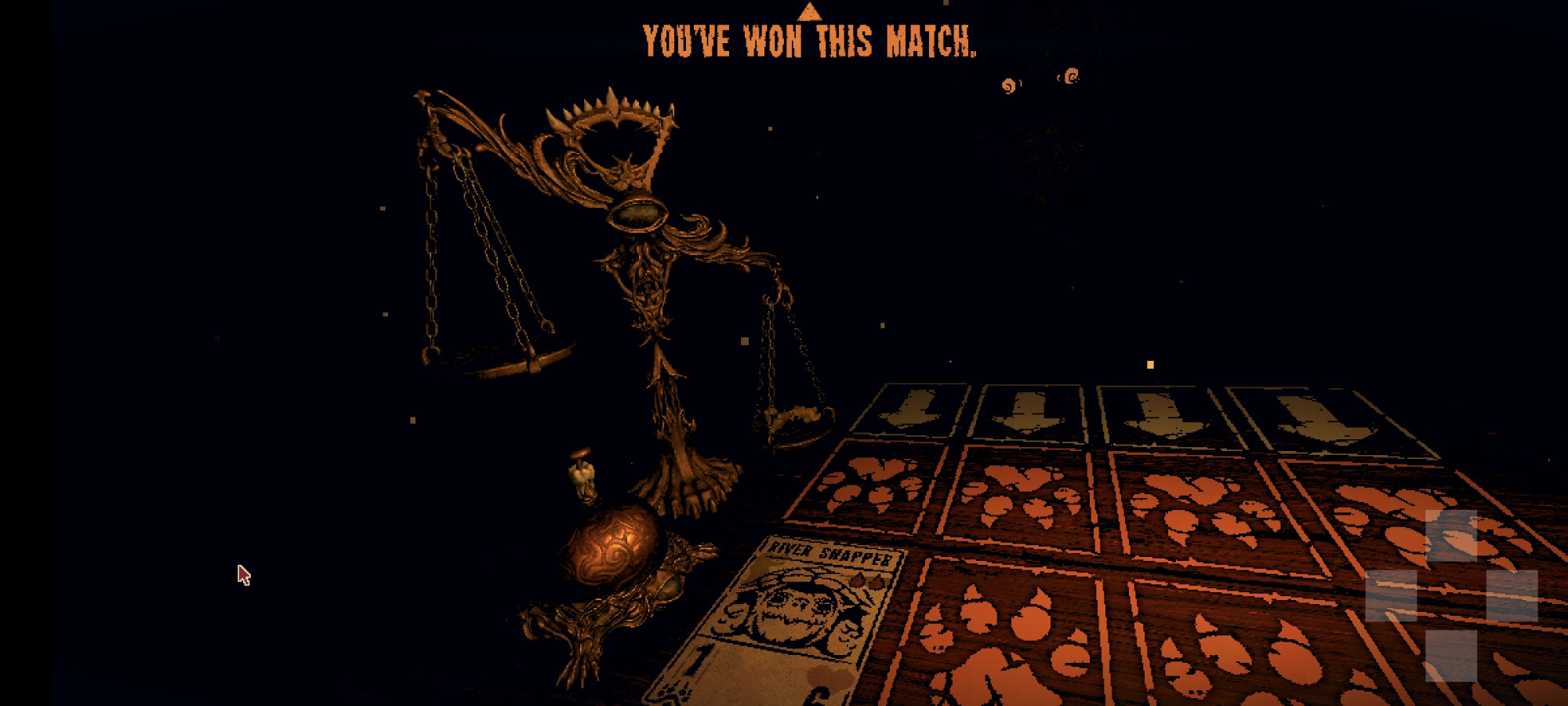 But between rounds, you realize you can stand up. The room has a cuckoo clock, an old safe, locked drawers, and paintings that seem to watch you. Some cards begin to whisper. They ask for help, warn of danger, or hint at how to open the next door.