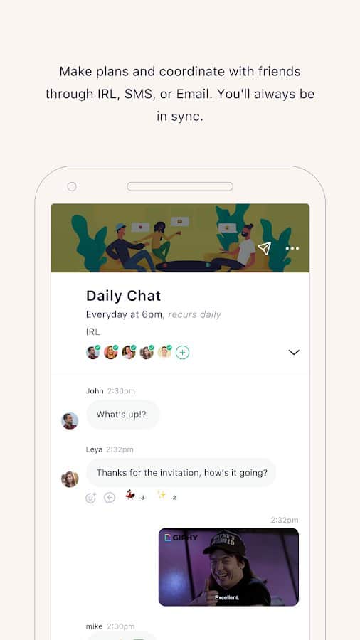 IRL Social calendar - Social Calendar will be at your fingertips when it is planned to organize business or social meeting event or meeting. Built-in chat can help just few seconds to send the invitation to the right contacts and get the answer. button Issledovat" will allow you to stay connected to the most important and long-awaited events in the life of artists, competitors and celebrities. Assign meeting friends in cafes, restaurants, clubs and follow their activity. Synchronize with Google Calendar and track, manage notes and activities from any device, wherever you are.