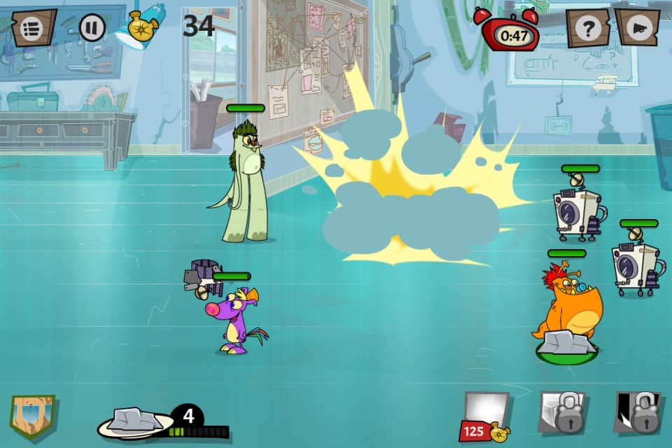 The plot of the arcade Jar Dwellers S. O. S. talks about the three mysterious creatures, more than two hundred years imprisoned in glass jars, which were in the basement of one of the institutions. But one group of students found the prisoners and released. One of the scientists, who dreams of glory, wealth, and even world domination has considered that the substance will help him in achieving the plans and decided that he would have to get them sent to capture the army developed machines. Being, in turn, having freedom began to explore new unfamiliar world, but during the captivity they had lost their instincts, and now, amid the persecution they are struggling. Your task is to help survive released at the same time to restore the survival skills and instincts. And then send the wards to float freely.