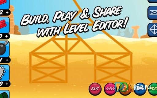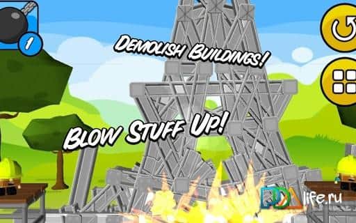 and with all that you need to destroy at least 80% of the structure below the level considered passed! In addition you have a unique opportunity to create their own levels using the designer.