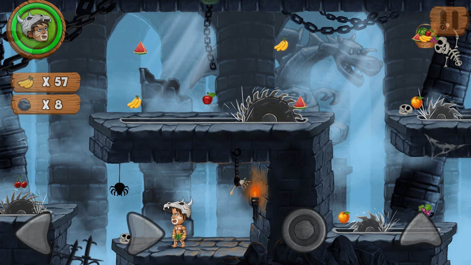 Jungle Adventures 2 – a fun platformer for Android where you will help the main character Addu to return all the fruits back into the woods. The evil wizard stole all the fruits from the forest and attempts by them to become immortal, you have to stop him. Take control of the protagonist, who has new abilities and guide it in all locations of the game collecting fruit and fighting enemies. Our hero will travel not alone but with funny Pets. Now our hero can swim, jump, throw rocks and slide and ride Pets. Help the hero to defeat the evil wizard and restore peace and order in the native forest.