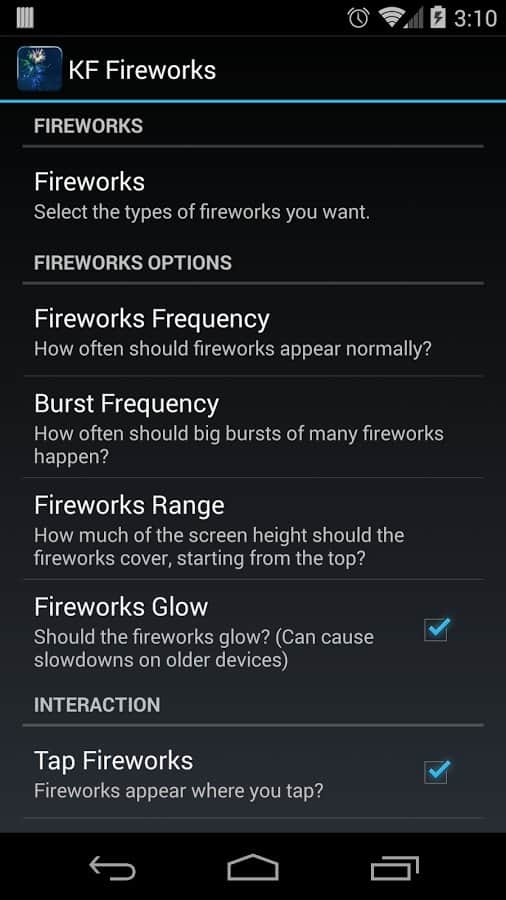 KF Fireworks Live Wallpaper – live Wallpaper with the colorful fireworks from the best developer Kittehface Software. Download and install these Wallpaper on the screen of your smartphone or tablet, decide on the type of firework, its frequency and other settings and feast your soul will last for many days and nights.