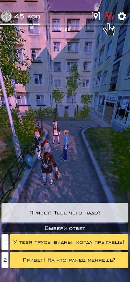Childhood of the USSR - Restore pleasant memories of childhood in your own memory by playing classic games that were popular in those days again! These games include "rock, scissors, paper", "minesweeper", "tic-tac-toe" and many others. Then the games were quite simple, but at the same time very exciting. Explore your city in more detail in 1985, when your parents were still young and you were a pioneer participant. Chat with local grandmothers and a janitor, walk around garages or in the park, and also call anyone in a phone booth.