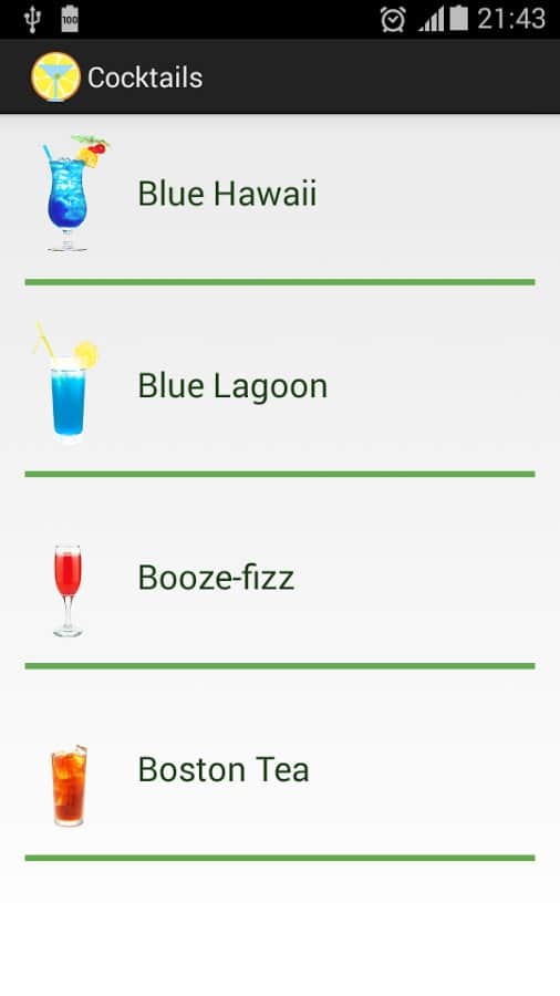 Плюс программы в том, что она не требует подключения к интернету, минус - на данный момент в базе совсем нет безалкогольных коктейлей, впрочем, последняя проблемя наверняка временная и исчезнет с последующими пополнениями каталога рецептов.