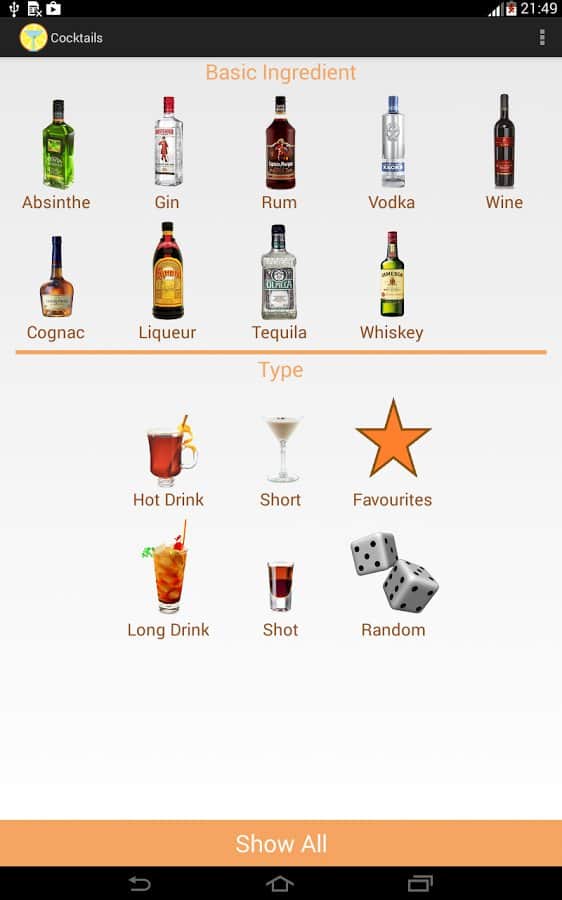 Есть среди нас любители попивать коктейли? А создавать их? Для последних данное приложение будет особенно полезно, ведь здесь собрано множество интересных рецептов, которые вы можете повторить прямо у себя дома.