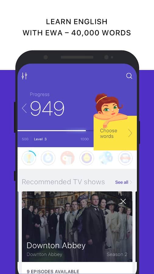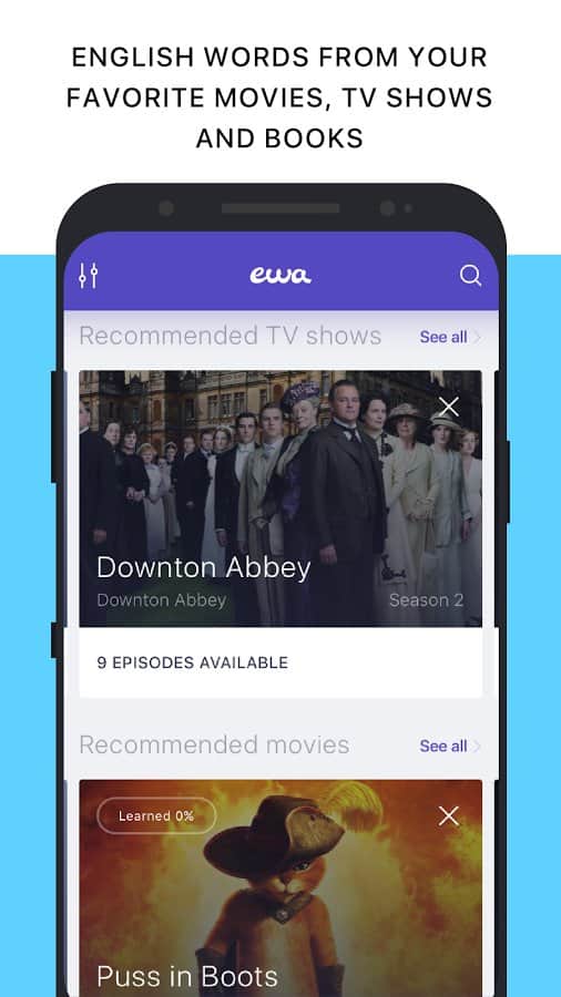 Together with EWA doesn't need to learn words and sentences in English, to sit in boring lectures and classes in learning this language. Here you can quickly learn a new design with the help of watching movies and series, thereby simultaneously having fun. Being not only productive but also interesting, this lesson will bring many benefits and allow you to watch your favorite movies and read books in English in the original. Here the only effective and proven methods of study, daily update of new words, a huge database of popular sayings, timely alerts on new products.