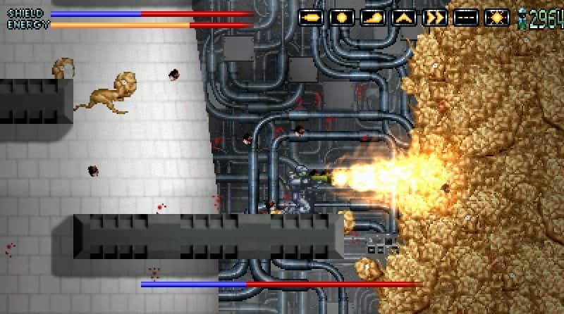 Life on Mars Remake – a remake of 8-bit action game for Android that was inspired by science-fiction horror films of 80-s and 90-ies. In this game you will travel to Mars to investigate a colony of Earth, with which communication was lost. People have created a Mars colony in order to study the microorganisms living in the frozen water of Mars. In this game you will carry out dangerous missions, where you will meet with terrible monsters and dangerous bosses. Equip your rifle and as the game progresses you will discover new weapons such as grenade launcher, flamethrower, machine gun and plastic explosives. Also in this game there is the opportunity to improve your costume by adding new features.