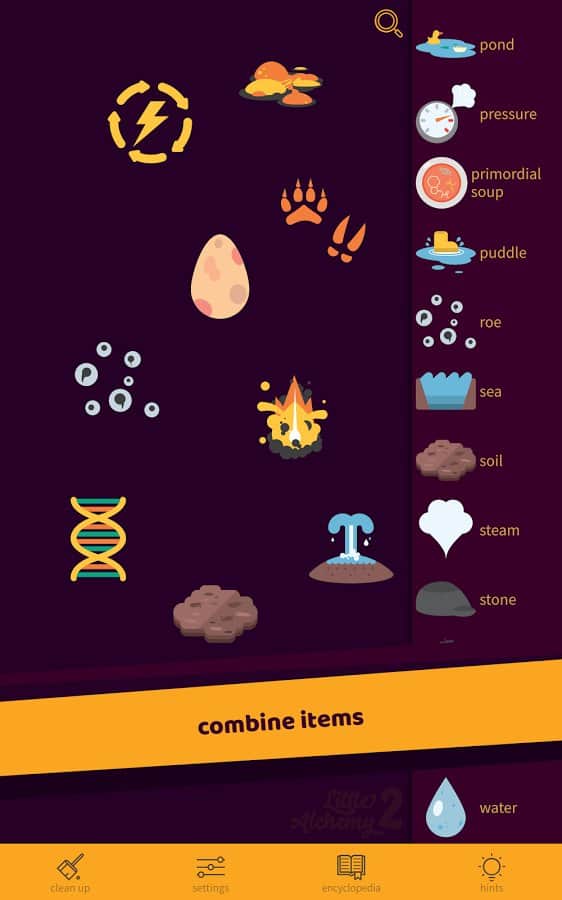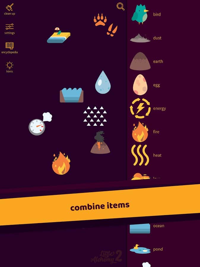 Little Alchemy 2 – continued fascinating game on Android, where you will create your own unique worlds. In this game your task will be to create new materials, to create and discover new things. This game will train your logic and intelligence and you can show all their imagination by creating extraordinary objects and read their amusing descriptions. Discover the new library, which will delight players with large variety of items. Play this game and get maximum pleasure from excellent graphics, original sound and encyclopedias with fascinating descriptions. Discover the unique world of this game.