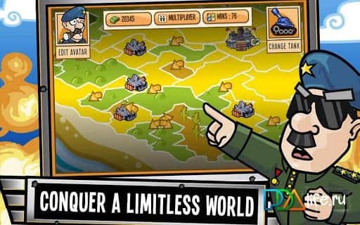 Little Generals is a war between two generals, one of whom is You. The game is very reminiscent light and bright and very well-known game Worms. But unlike worms, as the unit you have only one tank, but it does not make the game boring, but rather, puts you only combat excitement. Your main task - to capture all opponent's territory, which on the map is divided into areas. You can capture only the area that is adjacent to the one where you are now. In combat you can move around the field, but you need to buy fuel with the money received for winning battles. If it is not possible to buy fuel in your tank turns into a stationary battle point, and it robs you of tactical action, but it all depends on your strategy and vision. Jokes and the generals medals are awarded for victories only adds to the charm of this fun strategy!
