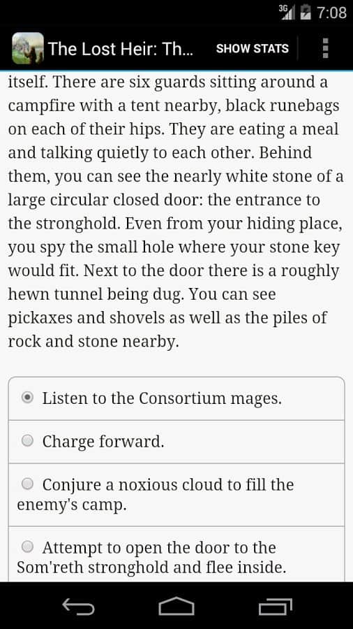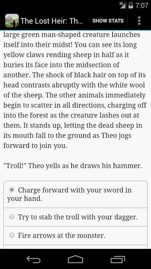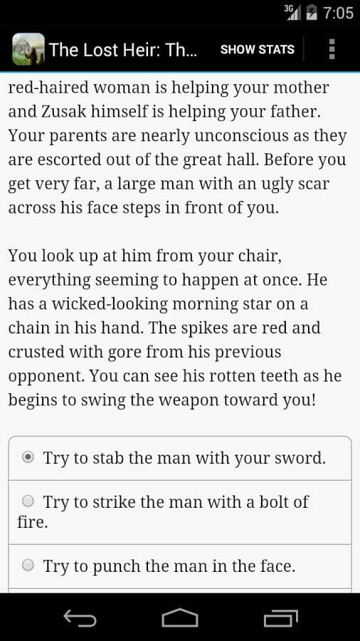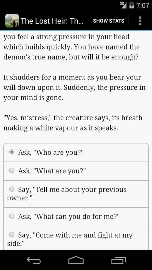 the Lost Heir: The Fall of Daria is an interactive game book for Android, composed entirely of texts. In this game you will learn the story of a young Prince who wants to regain right to the throne of Darius. When the Prince was still very young, his parents were killed by evil demons, who came into this world on the orders of the usurpers. Now your task is to help the Prince or Princess to take his place on the throne. This game has no graphics and sounds, you immersed in the game will recreate all the scenes in his limitless imagination. Nurture a valiant Prince or make it a noble knight, the evil thief, the inveterate swindler, a priest, or a powerful wizard all you want, now the life of the young Prince to be in your hands.