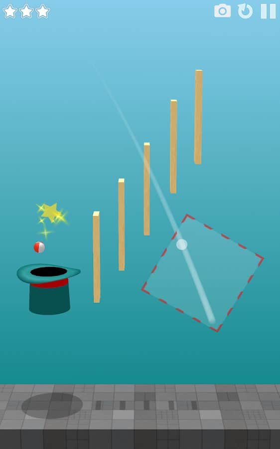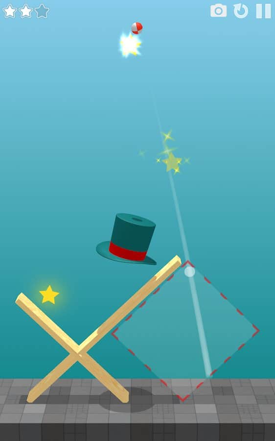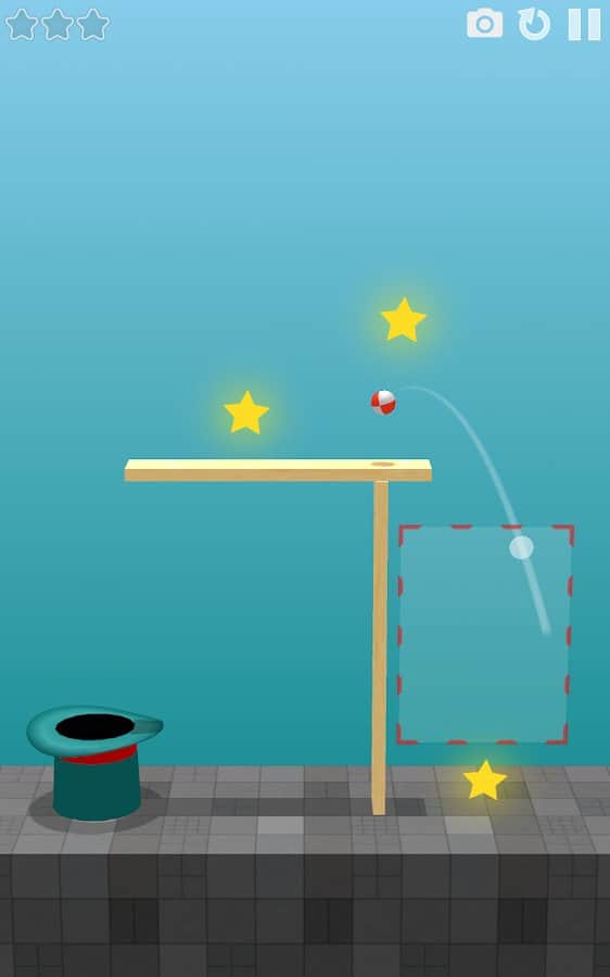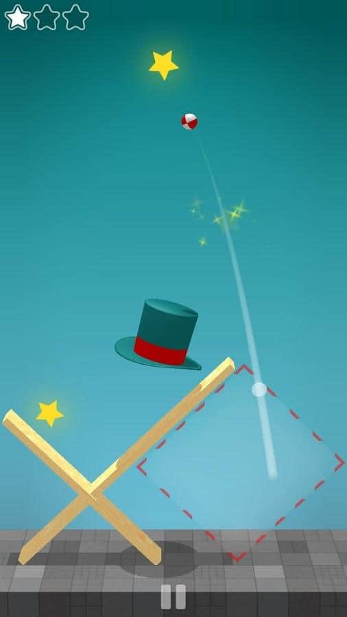 Magic Hat - Physics Puzzle – puzzle based on physics where you will perform numerous tricks. In this game you have to perform various actions and in order to get balls into the magic hat. At first glance the game seems very simple, but when you start playing you realize all the complexity. The ball which you control to bounce off the walls, the floor, the most magic hats, and other objects. Show your finger dexterity and ingenuity and put the ball in the hat, while collecting all the stars.