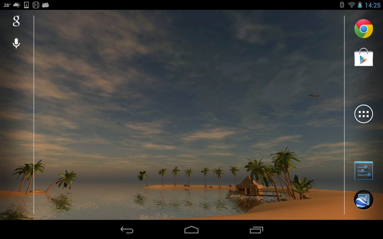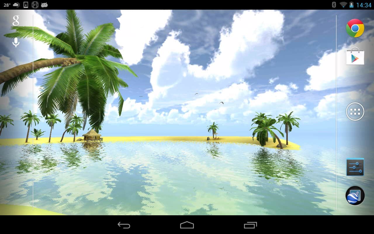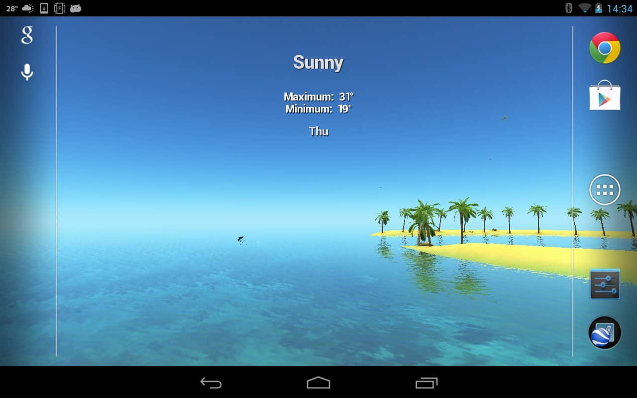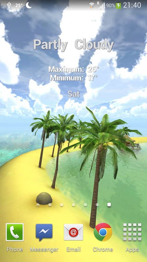 Maldives 3D, True Weather – a beautiful live Wallpaper with weather widget for Android devices from the developer Vivoti, will take you to a beautiful place where there is sun, sea and sand. These Wallpapers will display the weather in the current and specified location, and will demonstrate to all weather conditions.