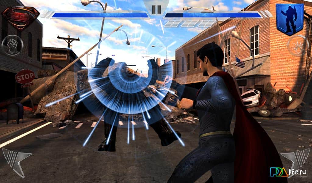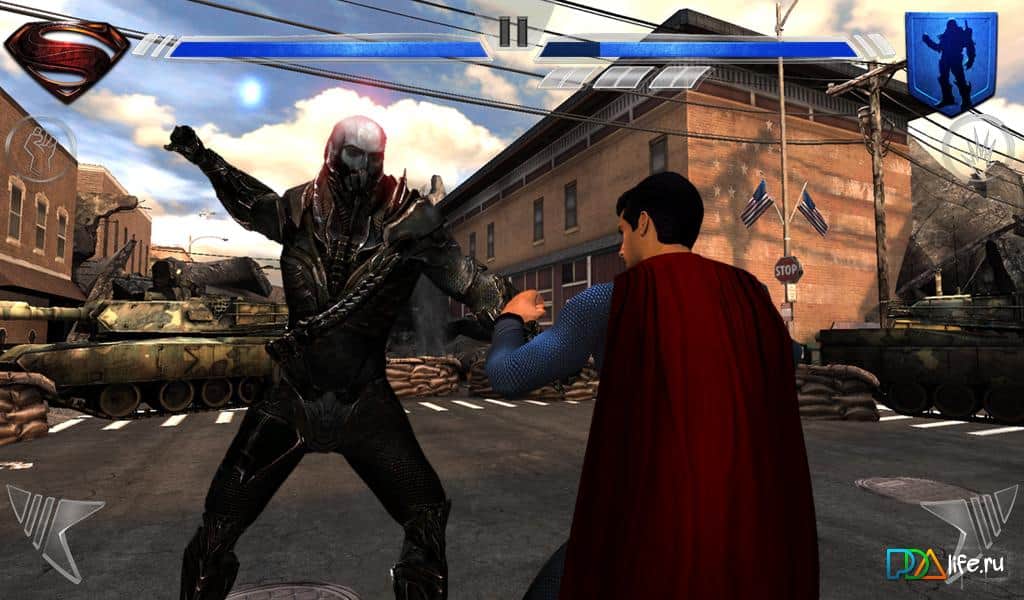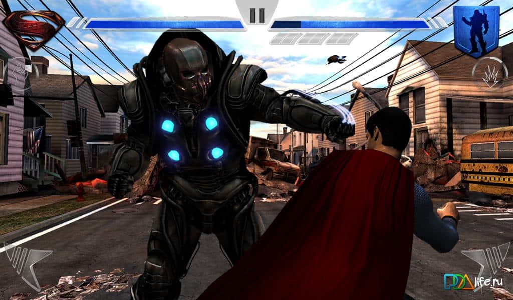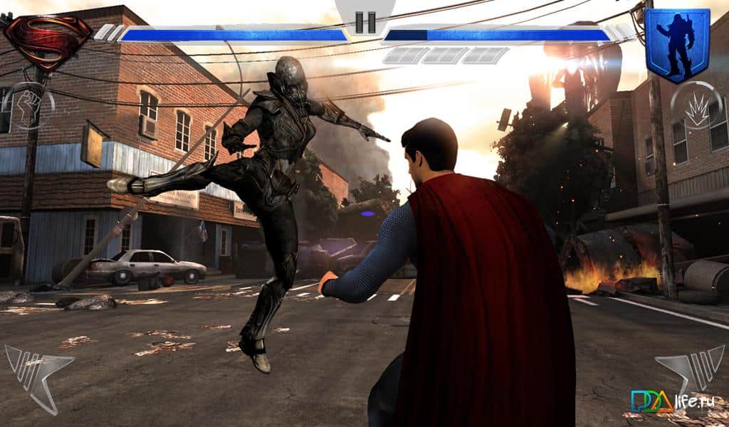 Man of Steel is a great fighting game for Android, created based on the movie "man of steel" Start his fight with General zod, using all their capabilities and abilities. Improve your suit and open a new 6 suits with their own unique features! Fight with the bosses, attack and Dodge, perform combos and fly with super speed. Amazing graphics, cutscenes and animations will leave a lasting impression about the game!