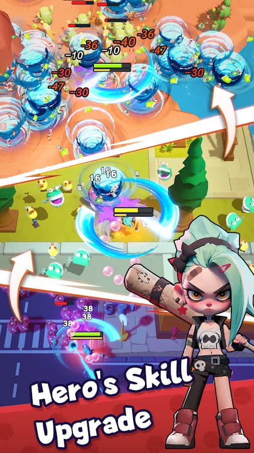 - Unique Heroes: Level up your characters, unlocking new skills and items.
