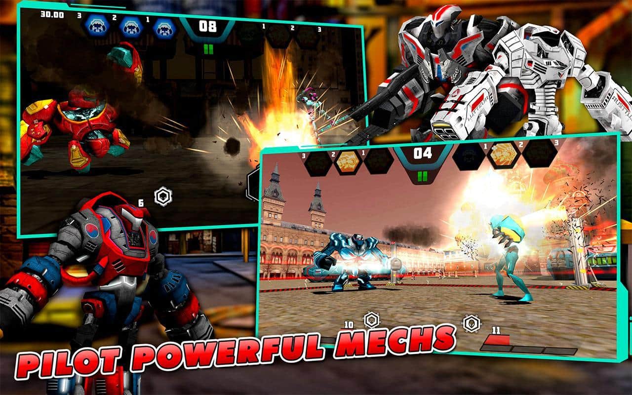 Mechs vs Aliens - это игра на андроид, в которой вам необходимо сражаться с внеземными монстрами, для спасения вашей планеты. Для отпора пришельцев, многие страны объединились для создания огромных боевых роботов, только они могут противостоять силе внеземной цивилизации. Сражайтесь с захватчиками в потрясающих пошаговых боях, и верните нашей планете былое спокойствие.